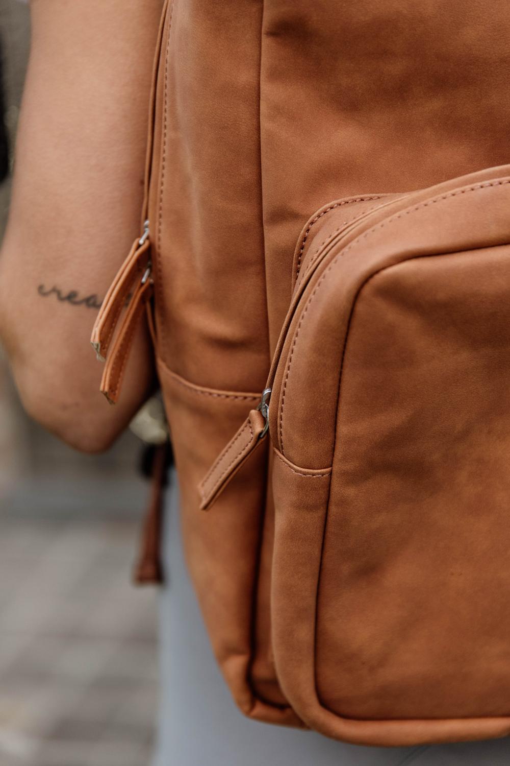 Like the other travel bags, the chestnut backpack Is made from vegan suede leather.