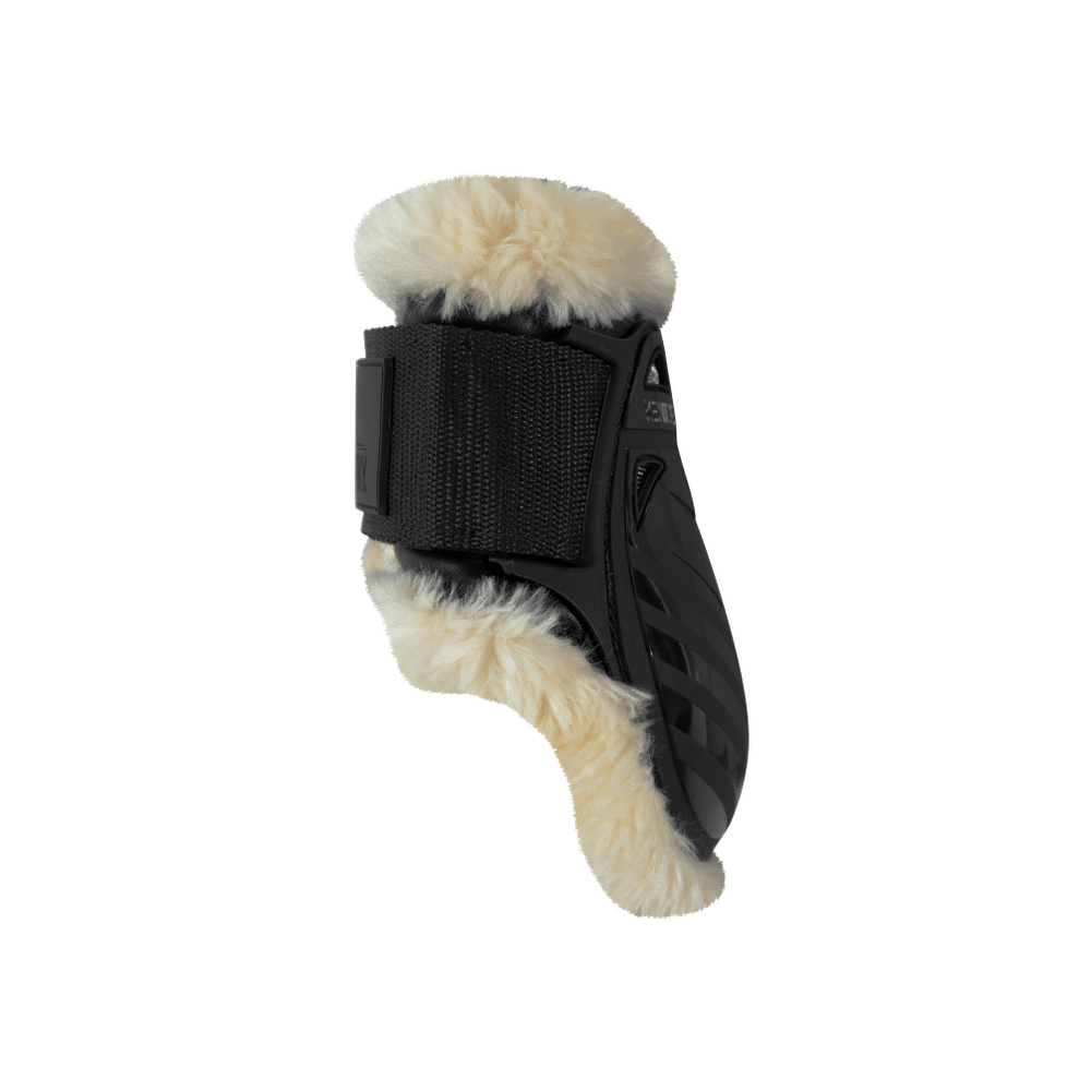 The Vegan Sheepskin Young horse fetlock boots are made out a of strong TPU shell with multiple ventilation holes and a bigger triangle mesh ventilation.
