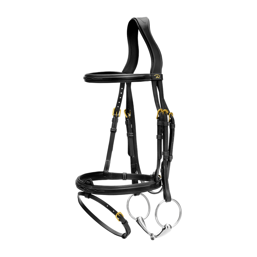 The bridle is part of the D collection, which means the color of the stitching is cream and the buckles are brass. Available in brown and black.