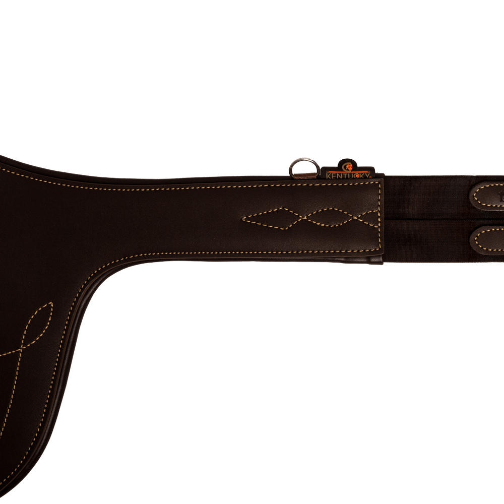 In addition to the wide protective plate, the Kentucky Horsewear Stud Girth is anatomically shaped offering comfort and safety when jumping while limiting the risk of injuries caused by horseshoes or studs. Specially shaped to follow the horse’s natural movement, it relieves the shoulders and elbows. It features an EVA protective inner, elastics on both ends to equalize pressure as well as three D-rings to accommodate schooling equipment and a buckle to attach the breastplate to the girth. The elastics are strong and stay firm as they are three double made. This Stud Girth is made out of artificial leather that doesn’t take in any dirt, sweat or water and is therefore more durable. Moreover, it does not change color and does not get damaged easily.