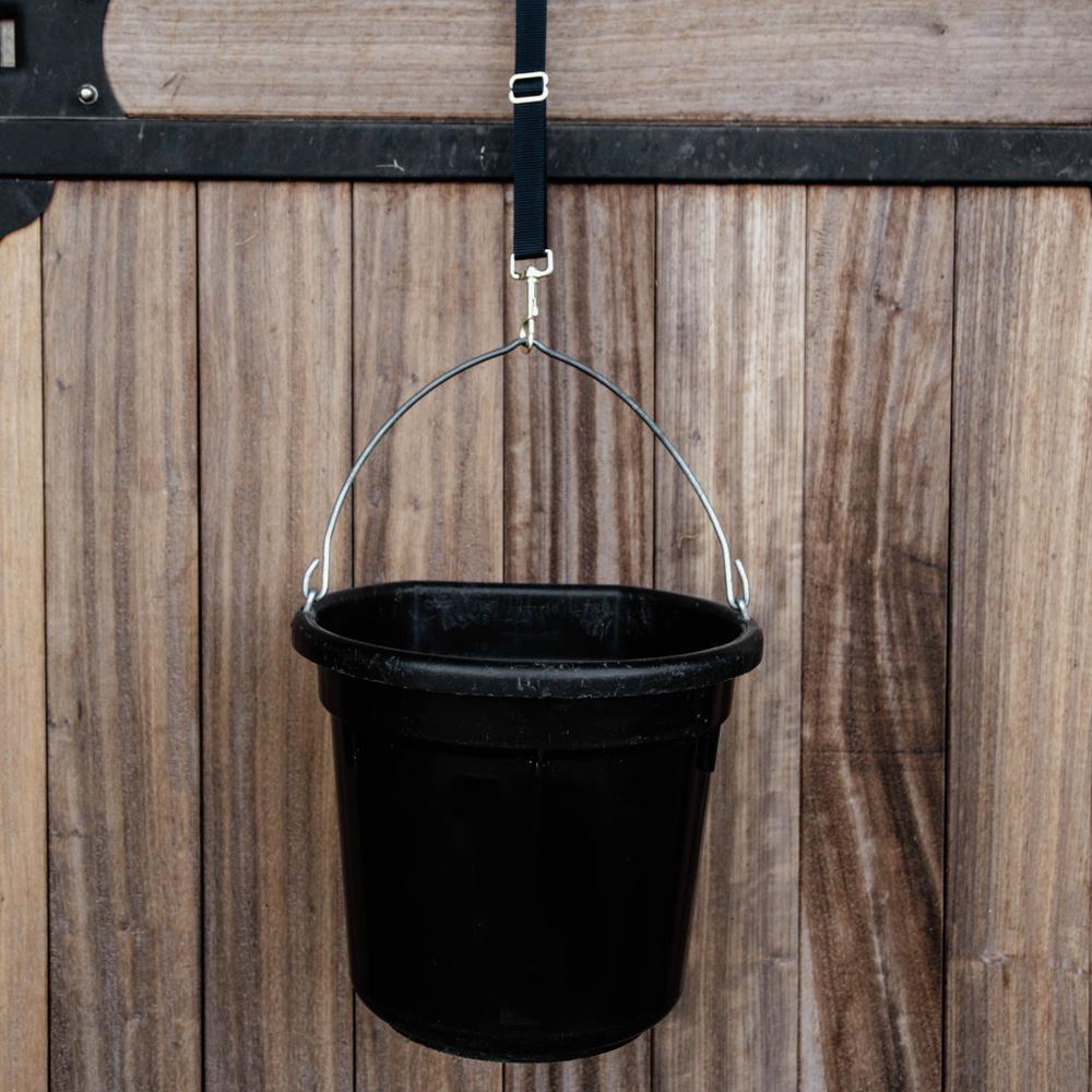 The Nylon Holder is a handy stable equipment buddy that helps you hang up various kinds of equipment such as buckets, kick pads, bridles, halters, stable guard, stable curtain, etc. It is a must-have for horse lovers that often go to shows or for everyone that has a lot of equipment at home.