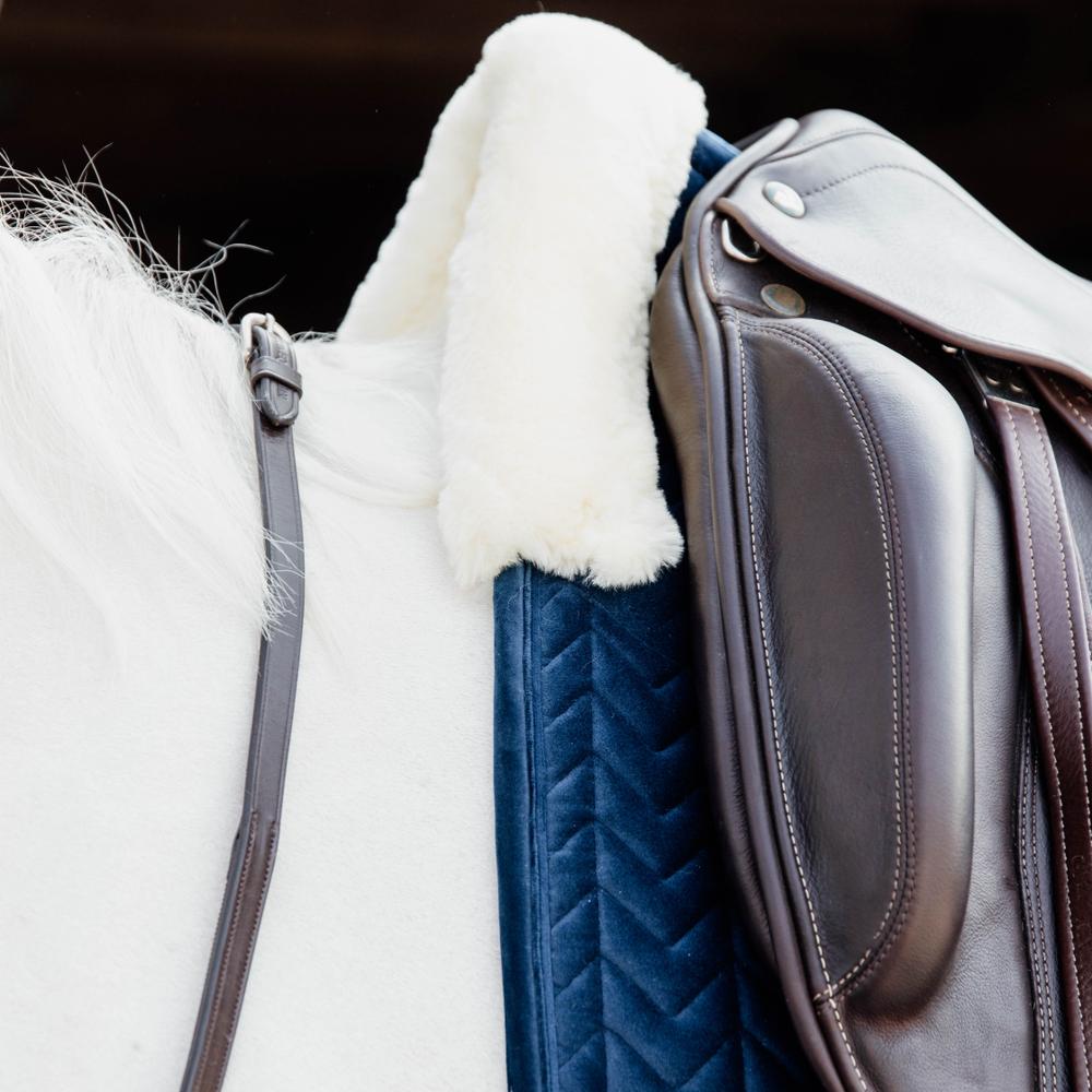 We recommend washing the saddle pad regularly to avoid rubbing by sweat or dirt. Both the velvet and vegan sheepskin fabric are washing machine friendly. Wash the saddle pad at 30 degrees and let it hang to dry.