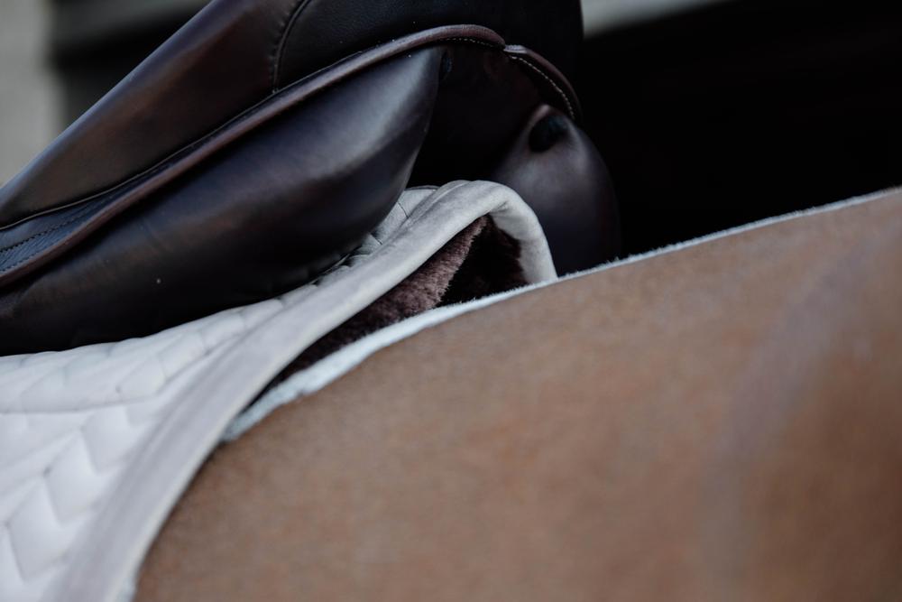 We recommend washing the saddle pad regularly to avoid rubbing by sweat or dirt. Both the velvet and vegan sheepskin fabric are washing machine friendly. Wash the saddle pad at 30 degrees and let it hang to dry.