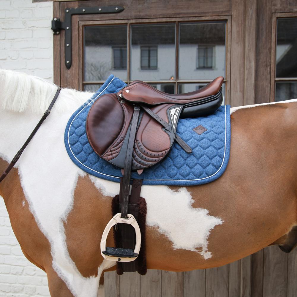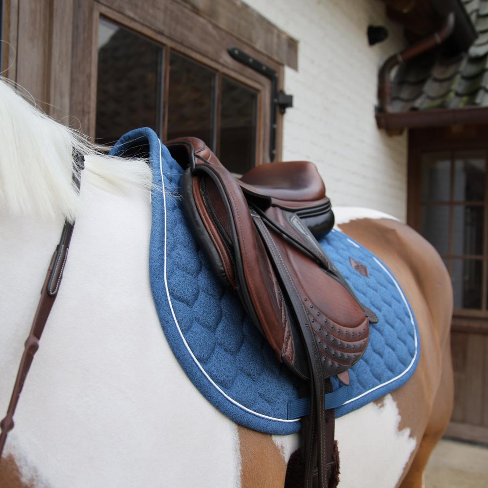 The Saddle Pad Melange stands out with its sophisticated melange texture that adds an elegant touch to your tack. The breathable fabric ensures your horse stays cool and comfortable, while the padding provides the necessary cushioning during long rides. Ideal for both everyday training and special occasions, this saddle pad combines functionality with stylish appeal. Available In show jumping and dressage shape.