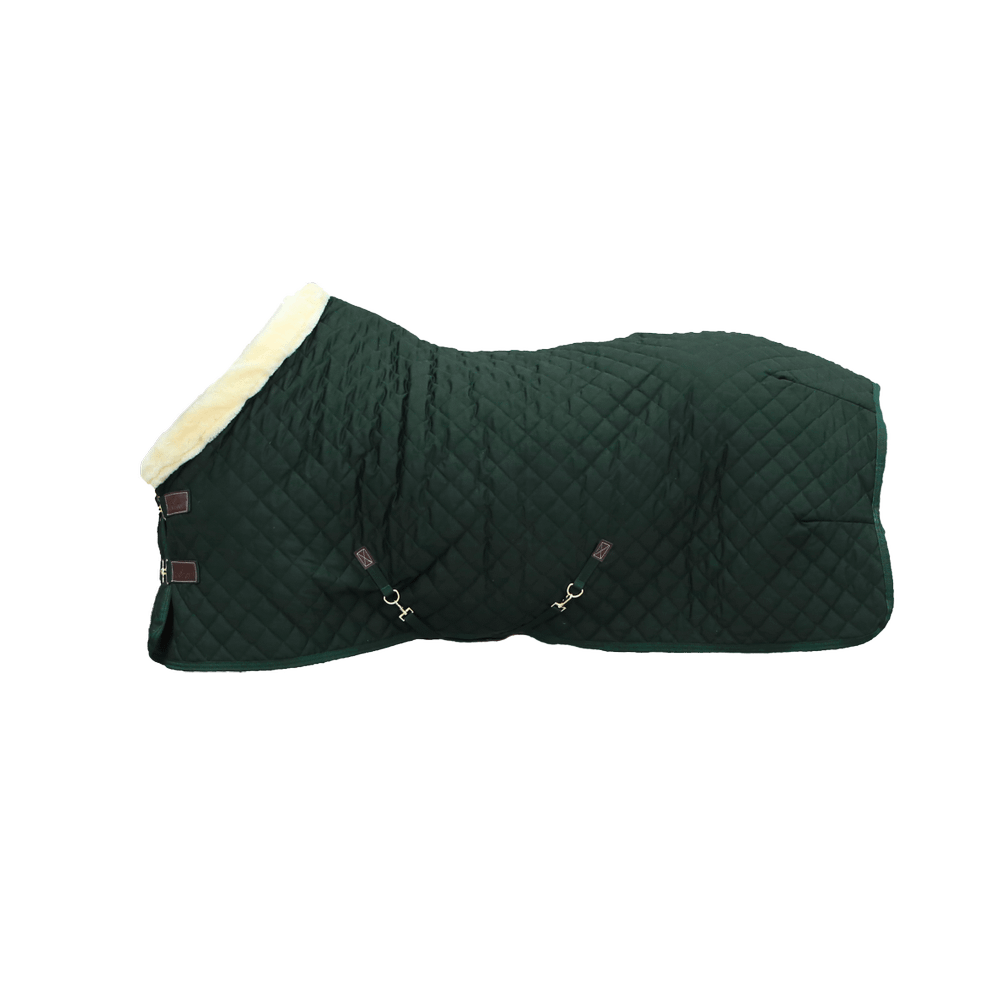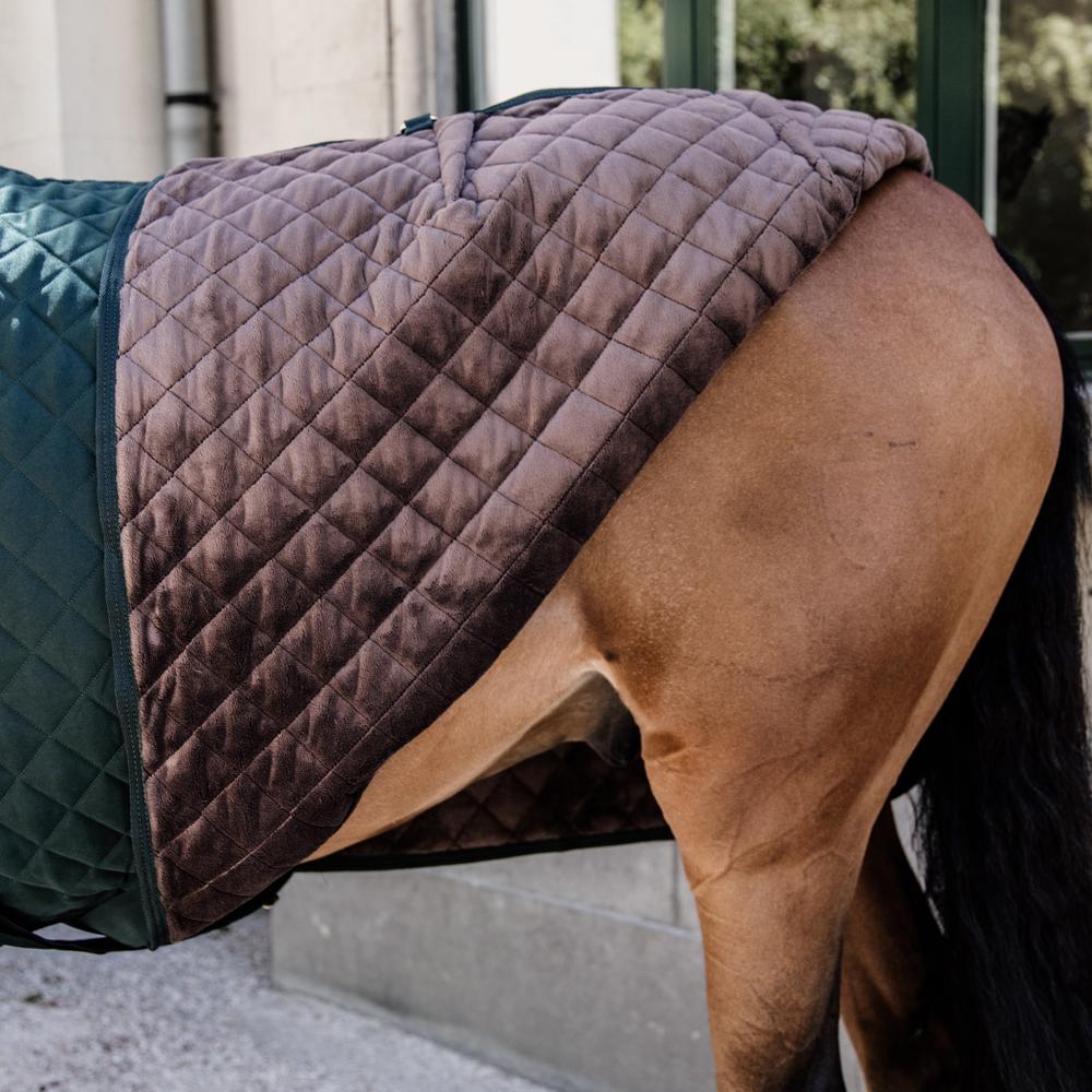 The Show Rug is made from 600D high tenacity polyester with a classy yet timeless diamond quilting. This makes it incredibly hard to tear the rug and avoids that shavings stick to the rug. To prevent pressure on the shoulder and wither area, the collar of the Show Rug is made from our popular artificial sheepskin. Next to a fancy look, the artificial sheepskin is also much more comfortable. For example, when the horse is eating the rug will not cut into the chest. The rug has a 160g fiberfill filling, which has the same performance as down but does not absorb any smell. To avoid rubbing marks, the rug is lined with our signature artificial rabbit skin. This fabric is extremely soft and creates a shiny effect on the horse’s coat. On top of that, the artificial rabbit skin creates tiny pockets of air. These pockets trap and retain the horse’s body heath causing an extra isolating layer. The combination of the materials creates a very breathable rug with a high warmth-to-weight ratio.