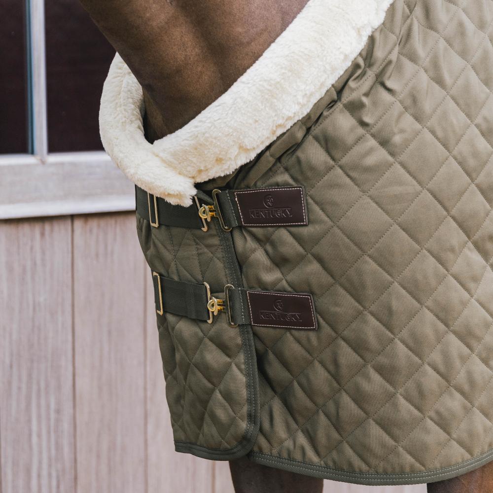 The Show Rug is anatomically shaped and thanks to the artificial rabbit skin, you don’t need to worry about the position of the rug as it always moves back into place. To have a better distribution of the pressure, the front flaps close like a Z, and the front closures are easily adjustable for the best fit. The surcingles and bungee cord are also adjustable and detachable. Thanks to the flexibility of the Show Rug it can be used for multiple purposes and combined with other Kentucky Rugs.
