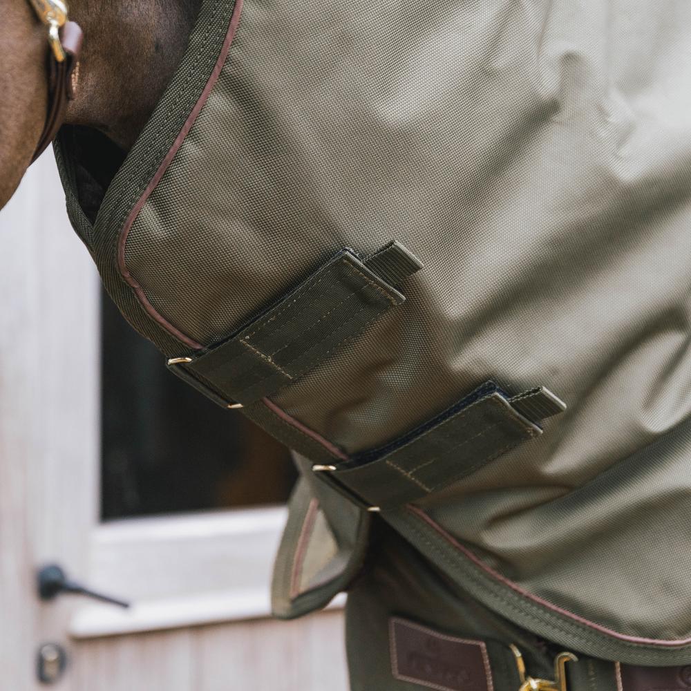 The Neck All Weather 150g can be used in combination with our Turnout Rug All Weather. The outside fabric is made of 1680 Denier high tenacity polyester which makes the neck piece extremely strong, durable and dirt-repellent. The PU waterproof and breathable coating makes it resistant to all weather conditions. The edge behind the ears is lined with artificial rabbit skin to prevent rubbing the mane. The neck piece can be attached to the rug with the four strong Velcro fastenings. It also has two strong Velcro closures. It is machine washable at 30°, no dryer.