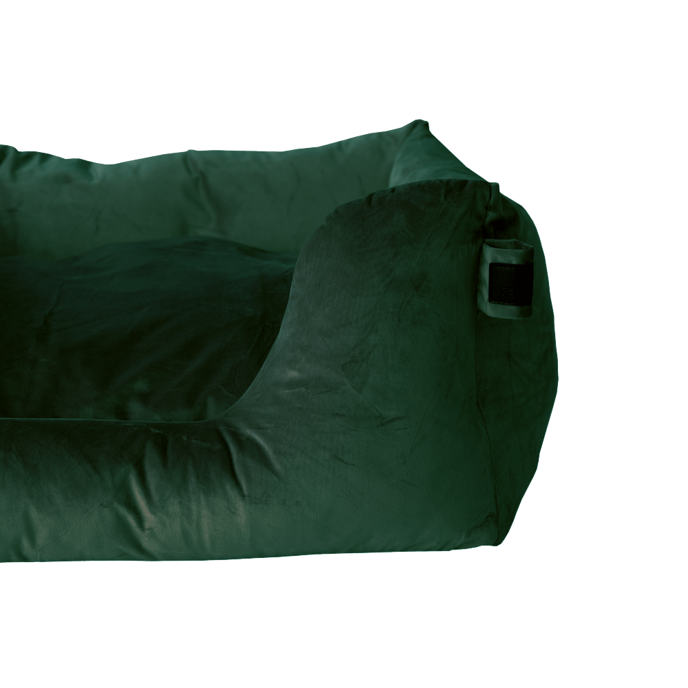 The bed has a removable pillow and 4 separate sides to avoid the filling from building up in one place. The cover of the bed is removable and easy to clean as it is washable at 30 degrees. It’s not advised to use tumble dry as this could damage the velvet fabric.