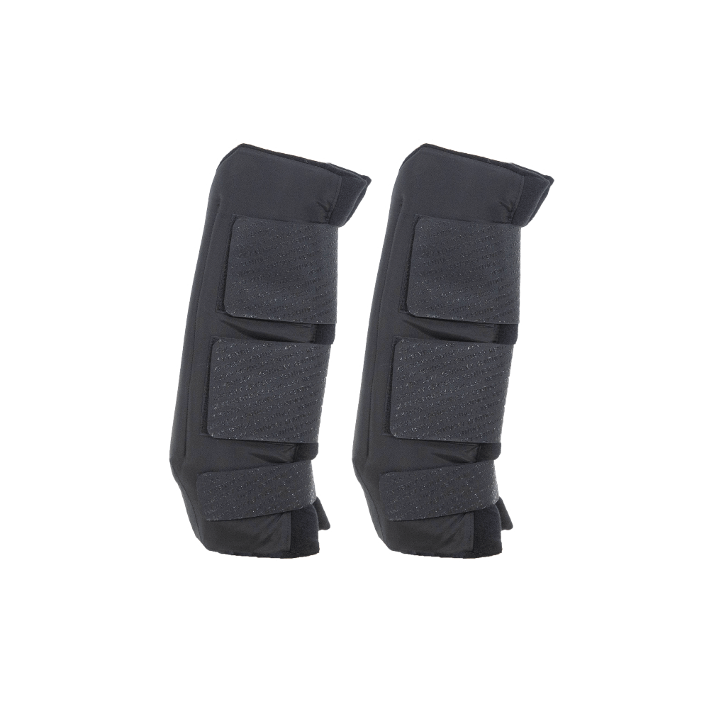 The stable boots have a normal height that does not extend beyond the carpal joint. They fully enclose the cannon bone and are ergonomically shaped, ensuring a perfect fit—especially around the fetlock. This ensures everything stays securely in place without slipping.