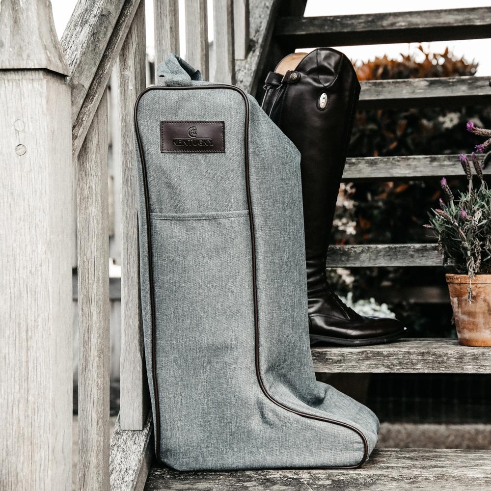The Kentucky Horsewear Boots Bag offers protection to your boots during transportation, at shows or at home. The Boots Bag has artificial rabbit skin on the inside to avoid scratches on the leather. The name tag on the front can be turned over and personalized. The Boots Bag can be easily carried thanks to the handle on the top or to the long nylon strap, which can be adjusted in length. The Boots Bag has the same diamond quilting and artificial leather piping as our Bridle Bag, stable set (curtain, guard, head protector) and our rugs! Therefore, this Boots Bag tops of the Kentucky show look. The Boots Bag is machine washable at 30°, no dryer.