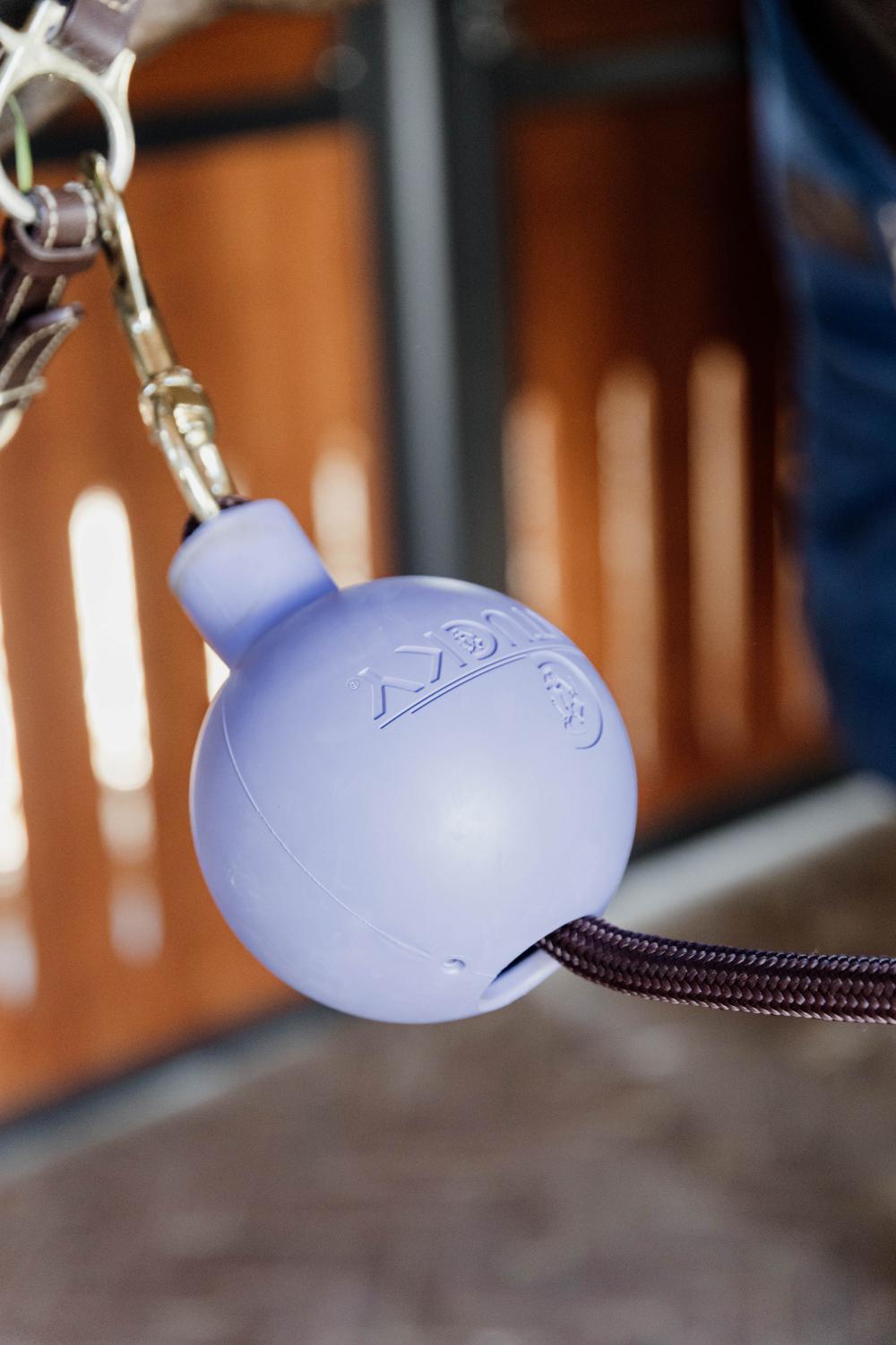 A practical and effective solution to prevent horses from hurting themselves, getting tangled in their tethering ropes or the horse chewing on the lead. The lead opening fits nicely around the lead to prevent shifting. The Rubber ball is a quiet guard, it will protect and prevent the lead making a hitting noise against the wall.