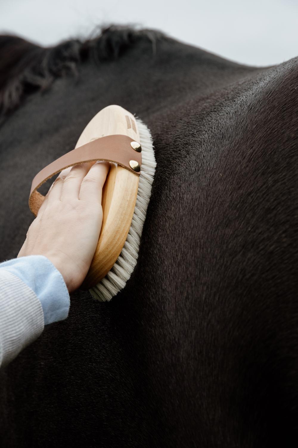The Overall Brush Body Soft Shine stands out with its unique combination of real horsehair and vegan sheepskin. The horsehair edges effectively lift and remove dirt, while the vegan sheepskin on the inside pampers your horse with softness and makes his coat shiny.