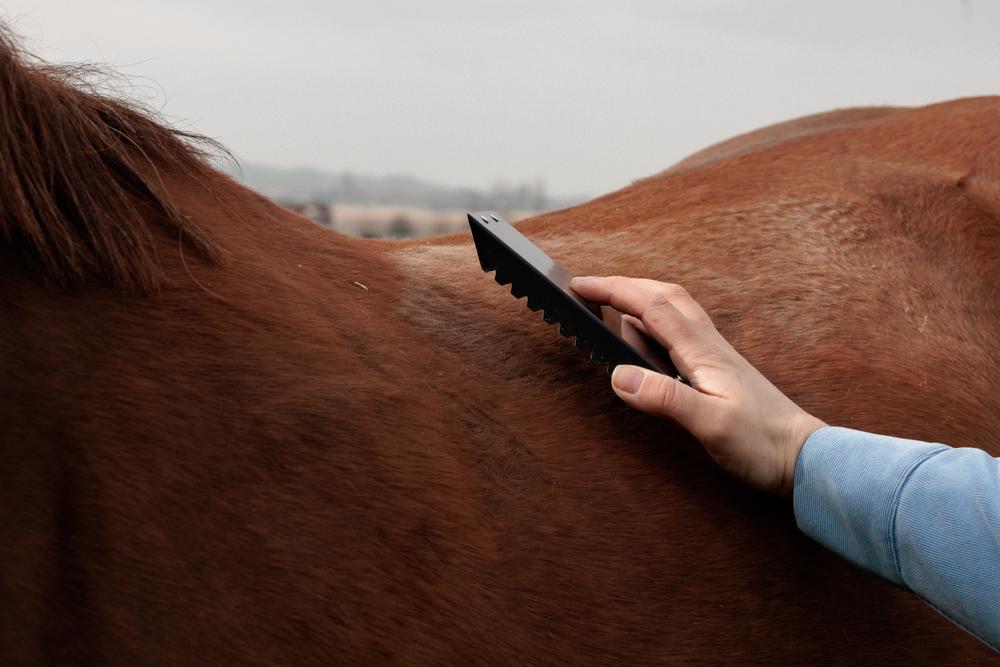 The comb features a square shape with an ergonomic handle that fits comfortably in hand. Compact yet effective, it’s easy to maneuver around the contours of your horse’s body, making grooming sessions quick and efficient.