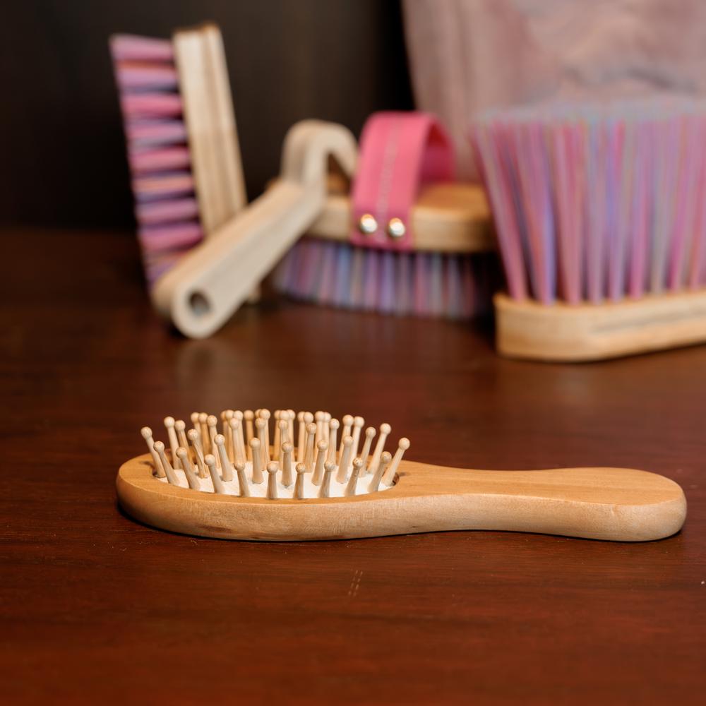 Make grooming a magical experience with the Sammy Kids Mane Brush Unicorn, specially designed for young pony lovers! This lightweight wooden brush effortlessly removes knots and tangles from the mane and tail, making it easier to style and braid. The covered needle heads ensure a gentle touch, protecting the hair while keeping it smooth and neat.