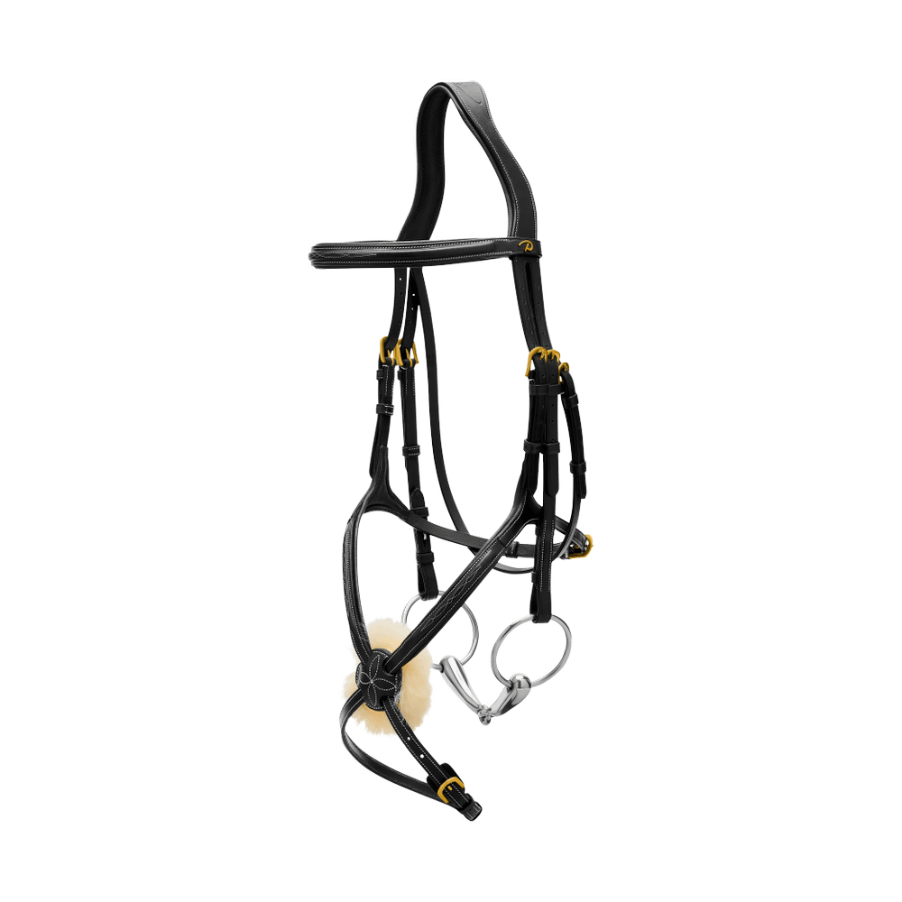 Crafted from high-quality Dy'on leather, this bridle combines durability with a luxurious feel. The leather maintains its quality and appearance through daily wear and tear, ensuring your bridle looks great and performs well over time. The stainless steel buckles add to the bridle's durability, providing a secure and rust-resistant fastening system that is easy to use and adjust.