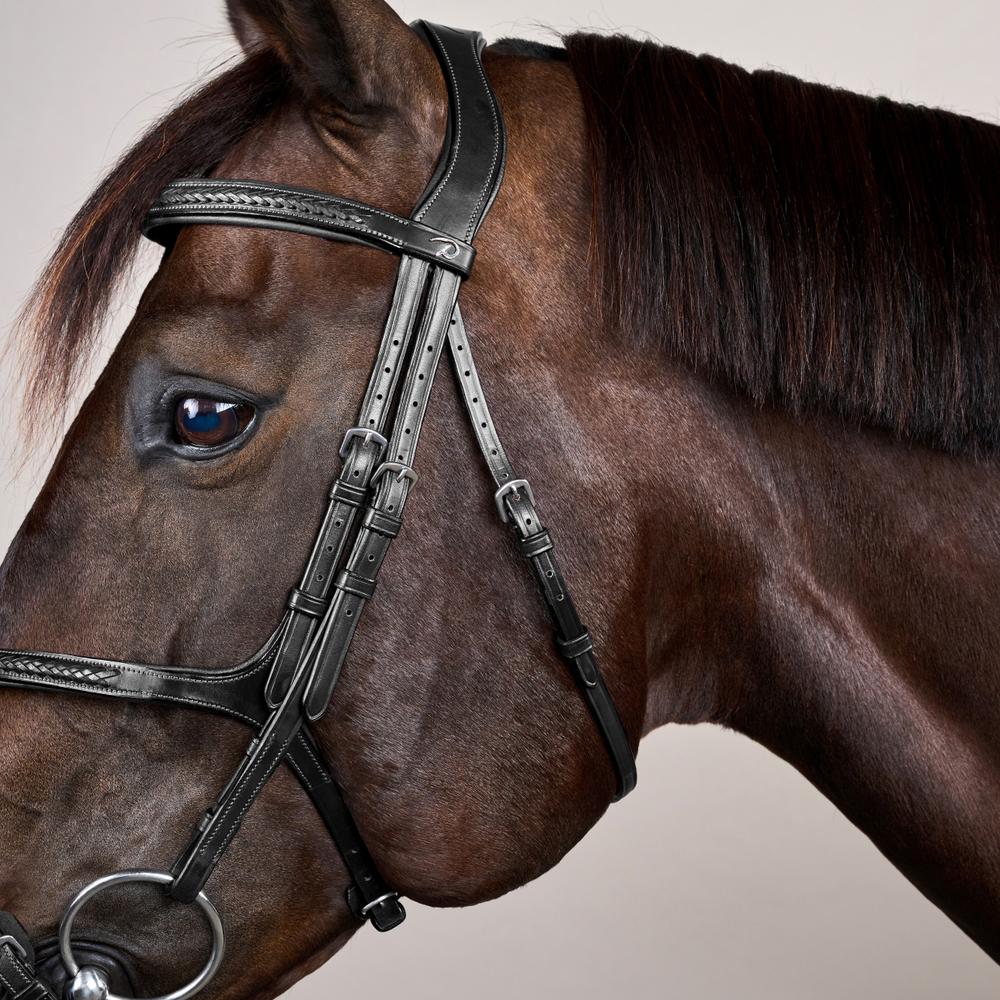 - Straight browband with elegant, plaited leather details
