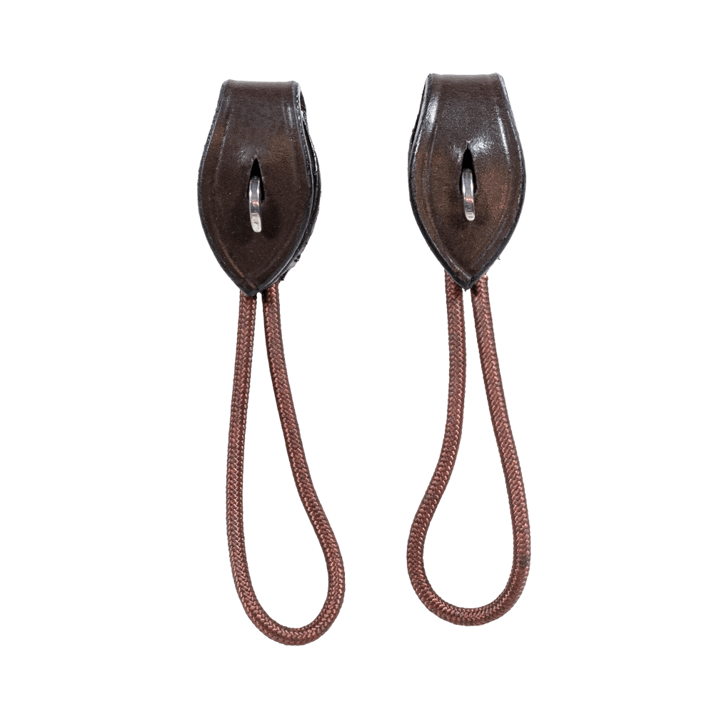 The Short Pelham Strap has thin rope to fit with a lot of different pelham sizes. The strap has a leather hook attachment.