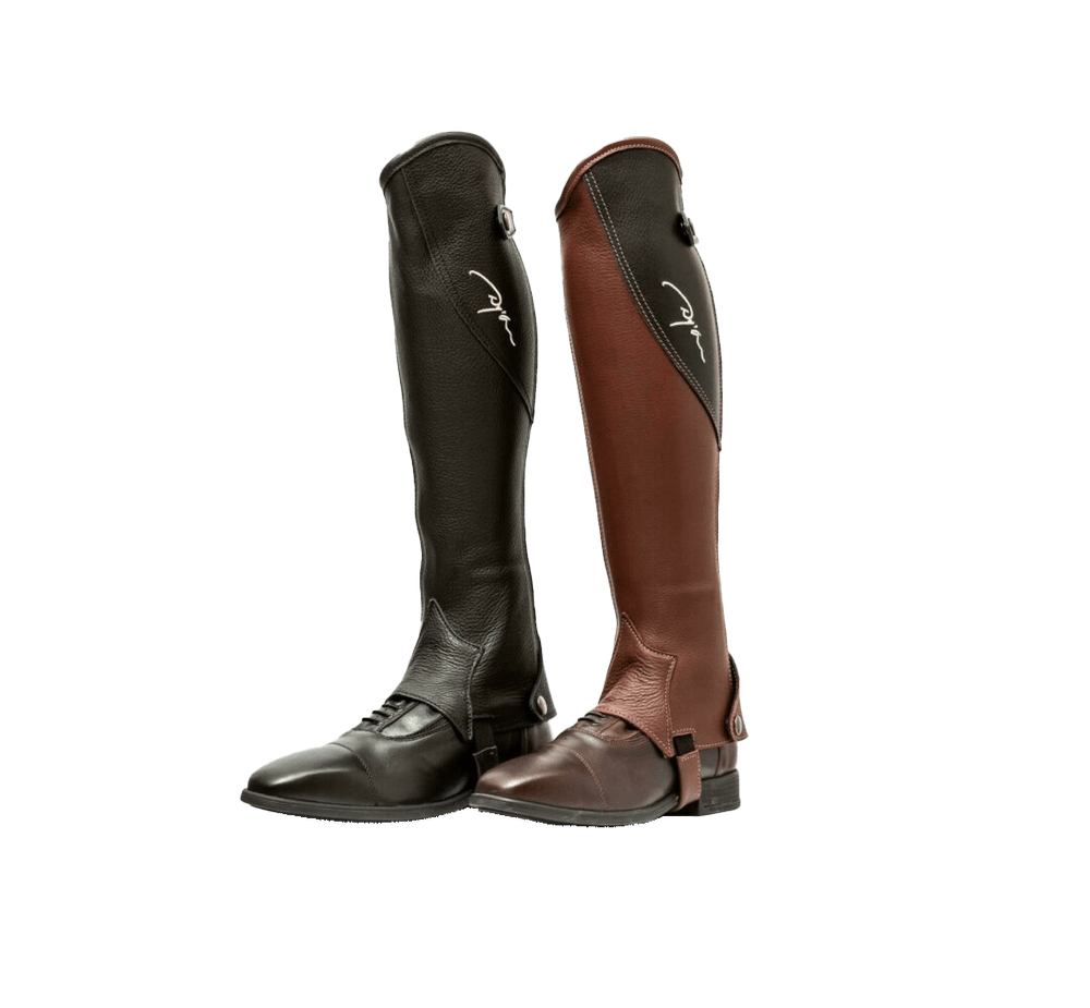 Designed for everyday wear with a professional feel, these half chaps offer the structure needed for intense training, hacking, or flatwork. They’re ideal for riders seeking a reliable, high-end alternative to tall boots—delivering close-contact performance without compromising freedom of movement. The elasticated components ensure a personalized fit that adapts to your leg, while the high-quality zip and foot strap keep everything secure through every stride. The spur protection pad helps prevent premature wear at the heel and protects both the leather and your boots from spur friction.