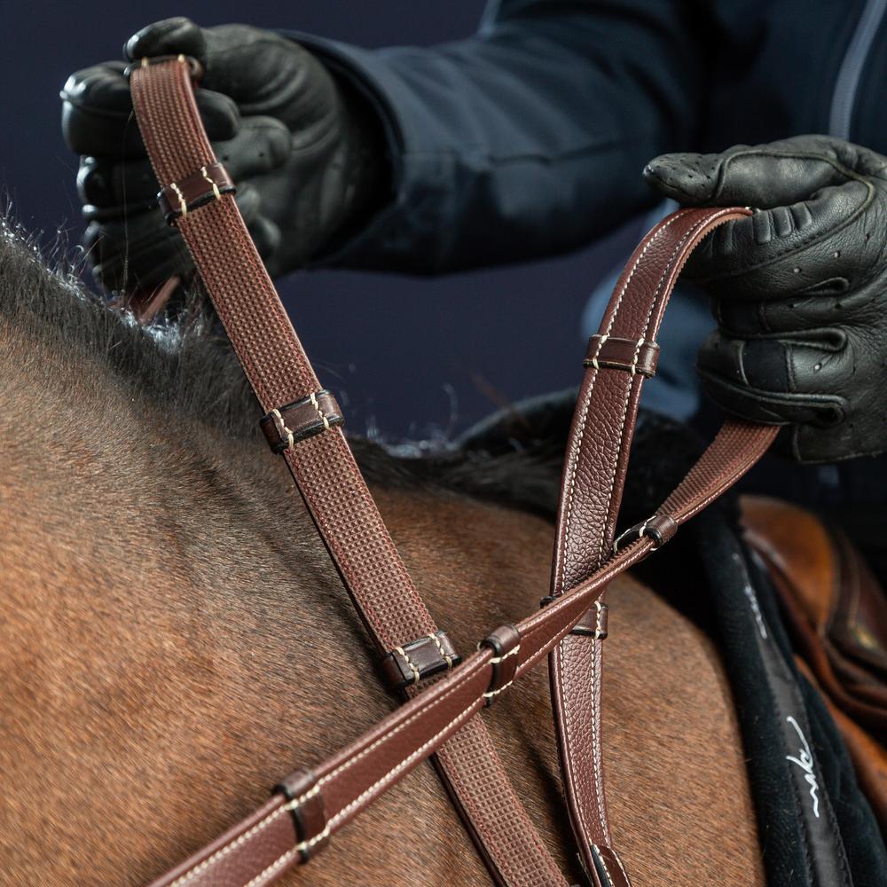 5/8" (16 mm) Hunter Reins With 7 Leather Loops with Dy'on stoppers and compatible with all bridles and double bridles of the US Collection