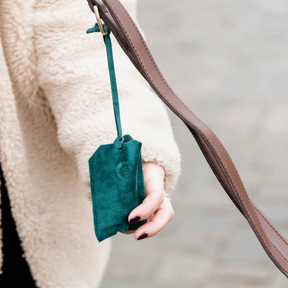 This cute pocket poop bag is the perfect match with our velvet walking equipment. Thanks to the cord, you can easily attach it to your dog lead. The bottom of the bag easily dispenses the poop bags.