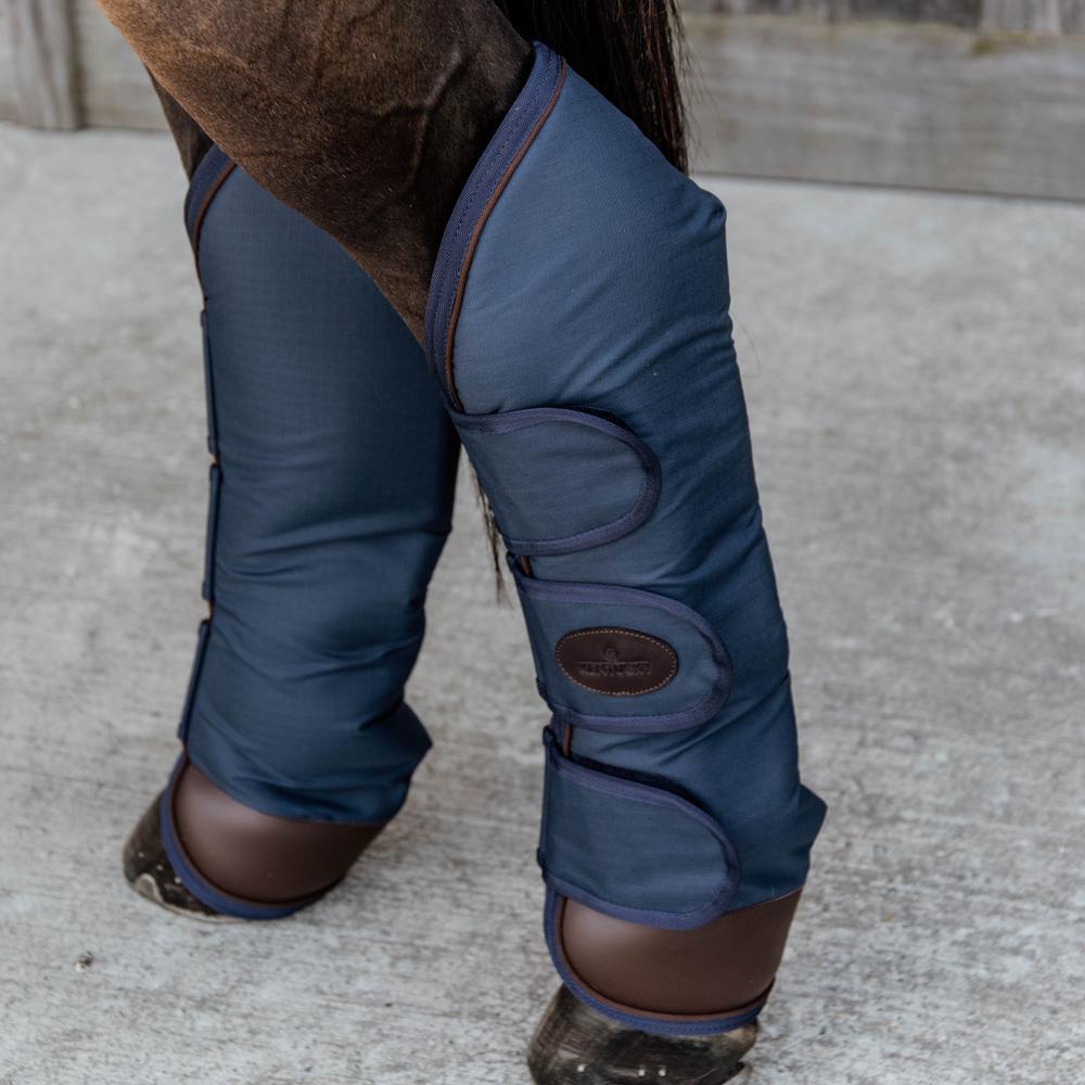 The boots come in a set of 4. 2 front boots protect from the heel up to the knee. The 2 hind boots protect from the heel up to the hock. Thanks to the 3 strong hook and loop closures, you don’t have to worry about losing the boots during transport.